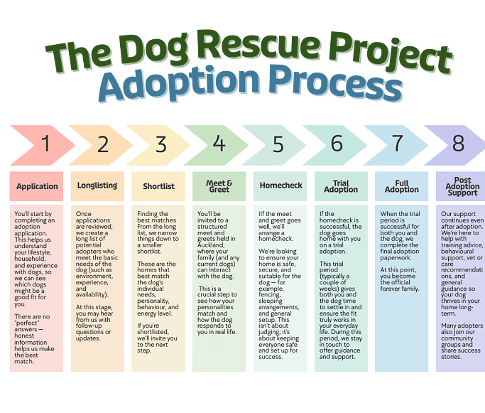 Adopting a rescue dog is a long-term commitment, often 10–15 years. Many of our dogs have experienced change, loss, or trauma, and they need stability, patience, and understanding as they settle into a new home.