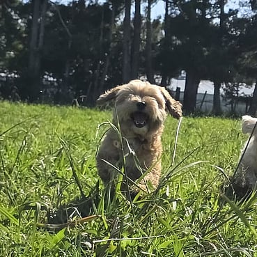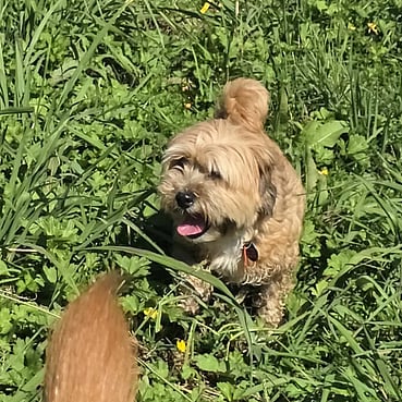 Good with dogs: Loves female dogs, can be a little funny with males so this is a work on for him.