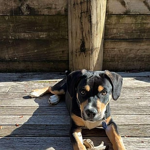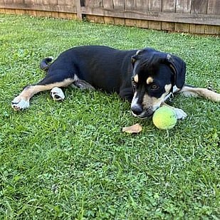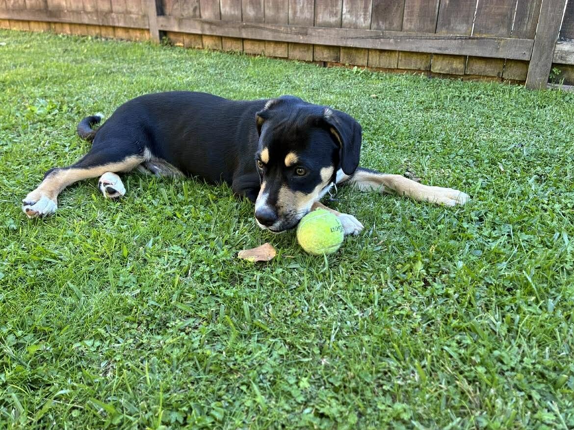 Benedict is the perfect mix of playful pup and chilled-out companion. He loves his toys and a good game of fetch, but if you’re not watching him, don’t be surprised to find him curled up on the couch looking like he’s always lived there.