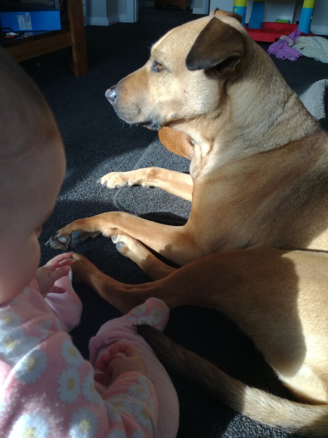 We didn't have to worry about Ted around our baby. Quite often he would sleep beside the bassinet and would check on the baby if she cried.