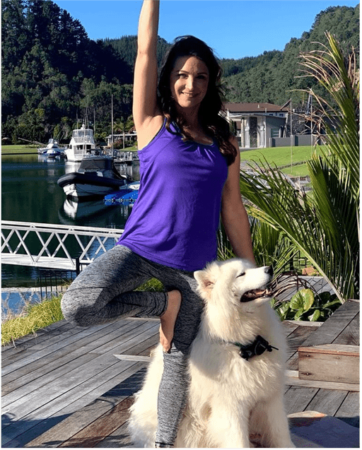 Close your eyes, and with your mouth closed, breathe in for 3 counts, hold for 3 and exhale for 4. The trick is to exhale longer than you inhale. Repeat three more times. Ahhh, that’s better, much calmer. And your dog is too. Keep calm and doga on…