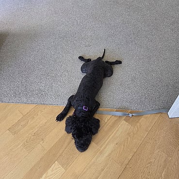 He listens so well it feels like he’s trying to get a promotion. He picks up routines quickly, trots into his crate at night with barely any coaxing, and generally behaves like a dog who wants a glowing performance review.