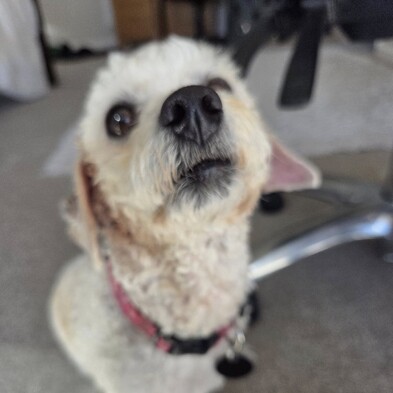 Estelle is the kind of dog who makes grown adults squeal in public. She’s got that “I’m too cute for this planet” energy and a gaze that could melt steel. She’s lovely, gentle, and gives cuddles like it’s her full-time job (which, frankly, it is).