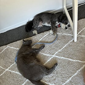Cats: At first I thought they were fun. Then I realised they are boring. Winston the cat is now my mentor. He trains me. I respect him.
