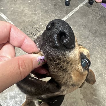 Someone patient, kind, and willing to continue my training and help build my confidence as I level up from “timid noodle” to “confident companion.” Ideally with a dog friend who can be my mentor and my emotional support role model.