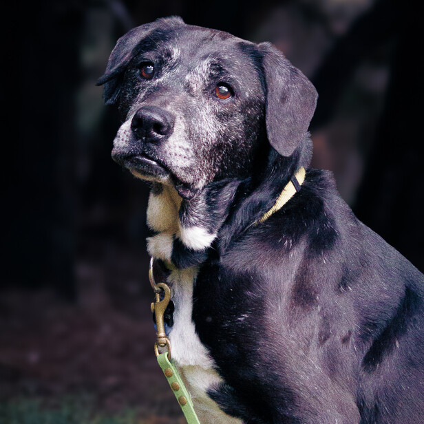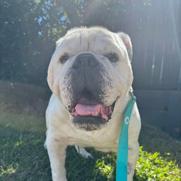 Ripley joined us in April 2024. He had his initial vet check and there were so many issues it became more of a list than one problem. His joints were more bad than good. Due to this, and that this will shorten his life, he became a permanent foster immediately! He loves joining his foster mum at work in the vet clinic and greeting all the dogs and humans. Despite everything he is an all round 10/10 good boy!