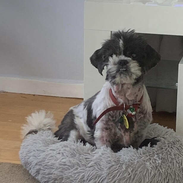 Lyka joined us in December 2023 with major skin issues. We managed to get these to a manageable level but after a unsuccessful trial and some separation issues arising it showed us her rightful home was with the rescue and her amazing foster mum. She now rules the roost and has a wonderful life.
