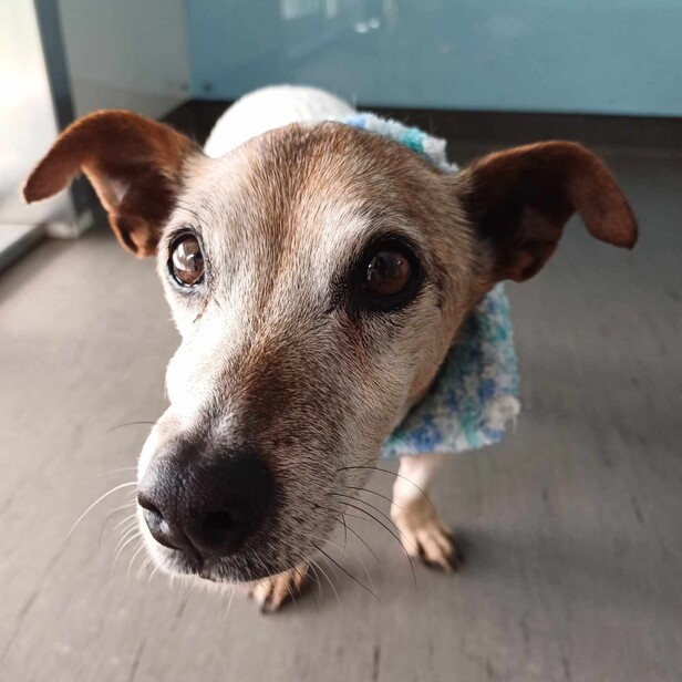 Frankie came to us in May 2023 and it was clear quite quickly that he had some issues with hearing and eyesight which meant he may struggle with the change of a new home, so his foster parents happily said they'd look after him as long as needed. He's another of our beach dwellers who loves acting like he's young and keeping everyone on their toes!