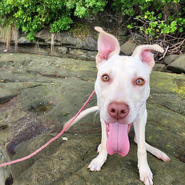 Sheldon is a sweet, loving, and curious boy who enjoys meeting new people and experiencing the world around him. He has been out and about to schools, cafés, horse riding environments, and the vet, where he handled everything like a champ. He is friendly with dogs, cats, chickens, and children, and would suit a family-oriented home willing to meet his needs.