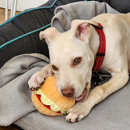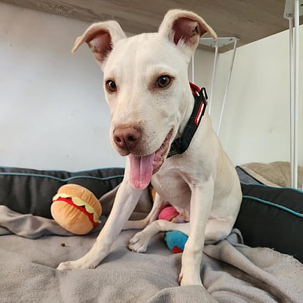 Sheldon is still young and shows typical playful puppy behaviours, so he will need a home that is patient, committed, and ready to put in the work to help him continue maturing into the best dog he can be.