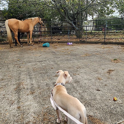 Good with other animals: Chickens/Horses, Yes. We can't imagine him not loving everything!