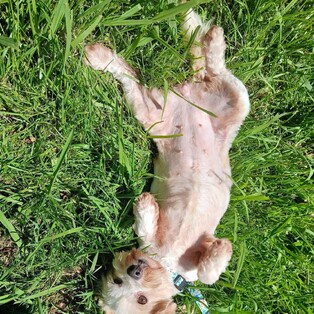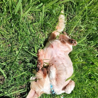 Rolling in grass like it’s her personal spa treatment.